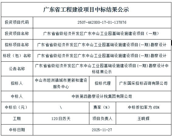 广东省工程建设项目中标结果公示 -九游会登录